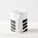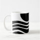 This mug has Bauhaus design of wavy lines and circles in black on a field of white.
