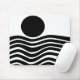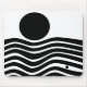 This mouse pad has Bauhaus design of wavy lines and circles in black on a field of white.