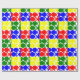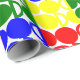 This wrapping paper has a Bauhaus design of repeating circles and semicircles in red, green, blue, and yellow. Like this design but want different colours? Message me.