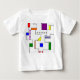 This baby t-shirt has a Bauhaus design of lines going vertically and horizontally to make a grid with squares, rectangles, triangles, and circles placed around the grid. If you like the design but prefer different colours, message me.