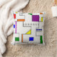 This throw pillow has a Bauhaus design of lines going vertically and horizontally to make a grid with squares, rectangles, triangles, and circles placed around the grid. If you like the design but prefer different colours, message me.