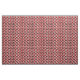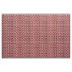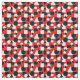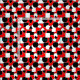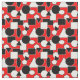This fabric has a Bauhaus design of triangles, circles, rectangles, and pentagons in black and white on a field of red.