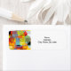 This return address label has a Bauhaus design has horizontal strips of colour and overlaid shapes placed on top. Colourful, bold, fun!