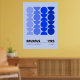 Minimalist Bauhaus-style poster featuring geometric blue circular patterns, advertising the 1923 exhibition held from July to September.