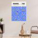 Minimalist Bauhaus-style poster featuring geometric blue circular patterns, advertising the 1923 exhibition held from July to September.