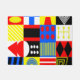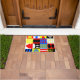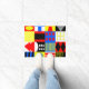 This doormat has a Bauhaus design of primary colours and shapes. Fun and bold.