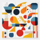 This Bauhaus-inspired geometric abstract design brings a modern twist to the art movement with it's simple geometry shapes including circles, repeating lines, squares and rectangles in a bold palette of saturated colours. The dynamic composition captures the essence of the modernist era.