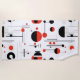 Red, white, and black Bauhaus modern geometric shapes artistic composition on a custom white background.