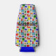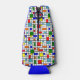 This bottle cooler has a Bauhaus design of a grid with squares and rectangles in red, green, blue, orange, light blue, yellow, and red. Change the name, keep it, or delete it completely.
