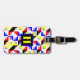 This luggage tag has a Bauhaus pattern in chequered design in primary colours with geometric shapes of a square, circle, triangle and parallelogram. You can make the pattern on this travel tag larger or smaller or rotate it to your preference. Personalise this luggage tag with your initial in the front and your contact information on the back. A great gift for someone that loves the Bauhaus style.