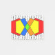 These Post-It notes have a Bauhaus design of overlapping pentagons, colored in red, yellow, orange, blue, and green with black dotted lines as a background.