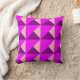 This throw pillow has a Bauhaus design of overlapping triangles in purple, magenta, and pink.