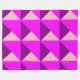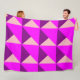 This large fleece blanket has a Bauhaus design of overlapping triangles in purple, magenta, and pink.