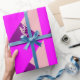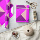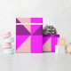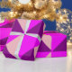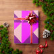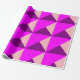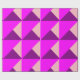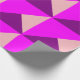 This wrapping paper has a Bauhaus design of overlapping triangles in purple, magenta, and pink.