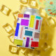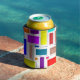This can cooler has a Bauhaus design of rectangles in many colours with their black outlines offset.