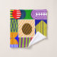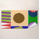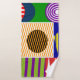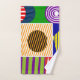 This towel set has a Bauhaus design of shapes and lines making a collage in primary and secondary colours.