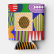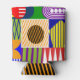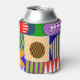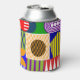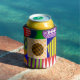 This can cooler has a Bauhaus design of shapes and lines making a collage in primary and secondary colours.