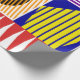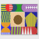 This wrapping paper has a Bauhaus design of shapes and lines making a collage in primary and secondary colours.