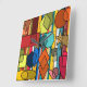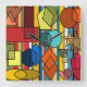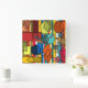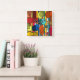This clock has a Bauhaus inspired design of shapes and lines in different shades of mid-century modern colours.