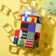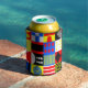This can cooler has a Bauhaus design of primary colours and shapes. Fun and bold.