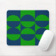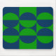 This mouse pad has a Bauhaus design of squares and circles in blue and green.