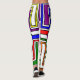 These leggings have a Bauhaus design of lines, triangles, diamonds, and squares making a stained glass look in primary and secondary colours.
