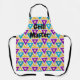 This apron has a Bauhaus design of repeating triangles in gold, turquoise, teal, purple, and light gold. If you like the design but prefer different colours, message me.