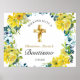 Bautismo de Niña Bonita Cruz Floral Amarillo Poster