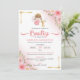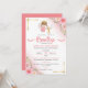 Celebra el bautizo de tu niña con esta invitacion de angelita y flores rosas. Personaliza este diseño.
