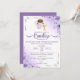 Make your girl's Baptism memorable with this Catholic religious invitation. It features a girl angel and purple flowers. Available in Spanish.