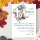 This adorable Baptism invitation, designed for either a boy or a girl, showcases Boho white flowers and a cute cross. Also available in Spanish.
