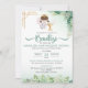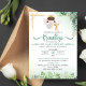 Make your girl's Baptism special with this Catholic invitation featuring a cute girl angel and gorgeous green flowers. Available in spanish.