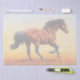 Bay wild mustang horse running across a dry grassy field. Realistic artwork created from an original oil painting by equine and wildlife artist Crista S. Forest.