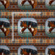 Beautifully painted portrait of a Native American bay pinto horse decorated with war paint symbols, feathers, and braided reins.