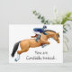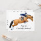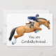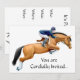 Original fine art design of a show jumping horse and rider on a quality and customisable party invitation by Two Purring Cats Studio.