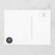 This postcard has a classic look with the colours red, white and blue with stripes and stars. In the centre of the circle there is a hamburger to represent a cookout party. This is great for the Fourth of July, Memorial Day, Labour Day or other patriotic events.