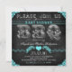 Grungy vintage chalkboard baby shower barbecue invitations. Beautiful antique, rustic style typography composed with curly scrolls and drawing of the blue love heart make it bold and unique. For baby boy baby shower. Please contact me if you need help with customisation. Browse my store for more beautiful and unique invitations.