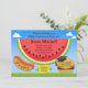 Invite family and friends to a BBQ Graduation party with this cute invitation featuring a watermelon, hot dog, a hamburger wearing a mortor board and a corn on the cob. Customise with your Graduation Party details.