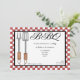 BBQ party invitations, you're invited to a BBQ party invites featuring a barbecue spatula and fork, customise with your own text / details barbecue