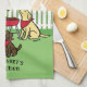 BBQ Party Labradors Hollyhock Flowers Cartoon Kitchen Towel for Labrador Fans! Three cute and delightful Labrador Retriever dogs enjoy Barbecue in the garden with Hollyhock Flowers. Labrador Illustration Created by Naomi Ochiai. You can personalise text.