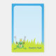 Prince frog with BBQ tools, tongs and spatula on grass and sky background. Custom text.