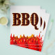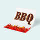 A custom flyer template with the word BBQ in western flaming letters with graphic art of red and orange flames at the bottom of the design.