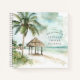 This notebook has a watercolor image of a palm tree and a palapa at a tropical beach with text that says Travel Journal.
