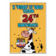 "I 'herd' it was your 24th birthday!" fun b-day cow holding a birthday cake greeting card.