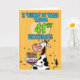 "I 'herd' it was your 41st birthday!" fun b-day cow holding a birthday cake greeting card.