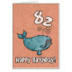 Happy birthday whale - 82 years old Cute humpback whale on an age specific birthday greeting card. Inside text: "Hope you have a whale of a time!"