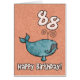 Happy birthday whale - 88 years old Cute humpback whale on an age specific birthday greeting card. Inside text: "Hope you have a whale of a time!"