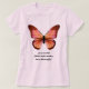 Stand out from the crowd in this shirt that features graphic artwork depicting a beautiful butterfly in colours of orange, pink and black with easy to customise text reading "In a world filled with moths, be a Butterfly!"