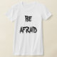 BE AFRAID! In creepy black font on light t-shirts. Fun, cool, hip and weird.