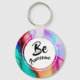 Be Awesome Pink and Turquoise Abstract Watercolor Key Ring